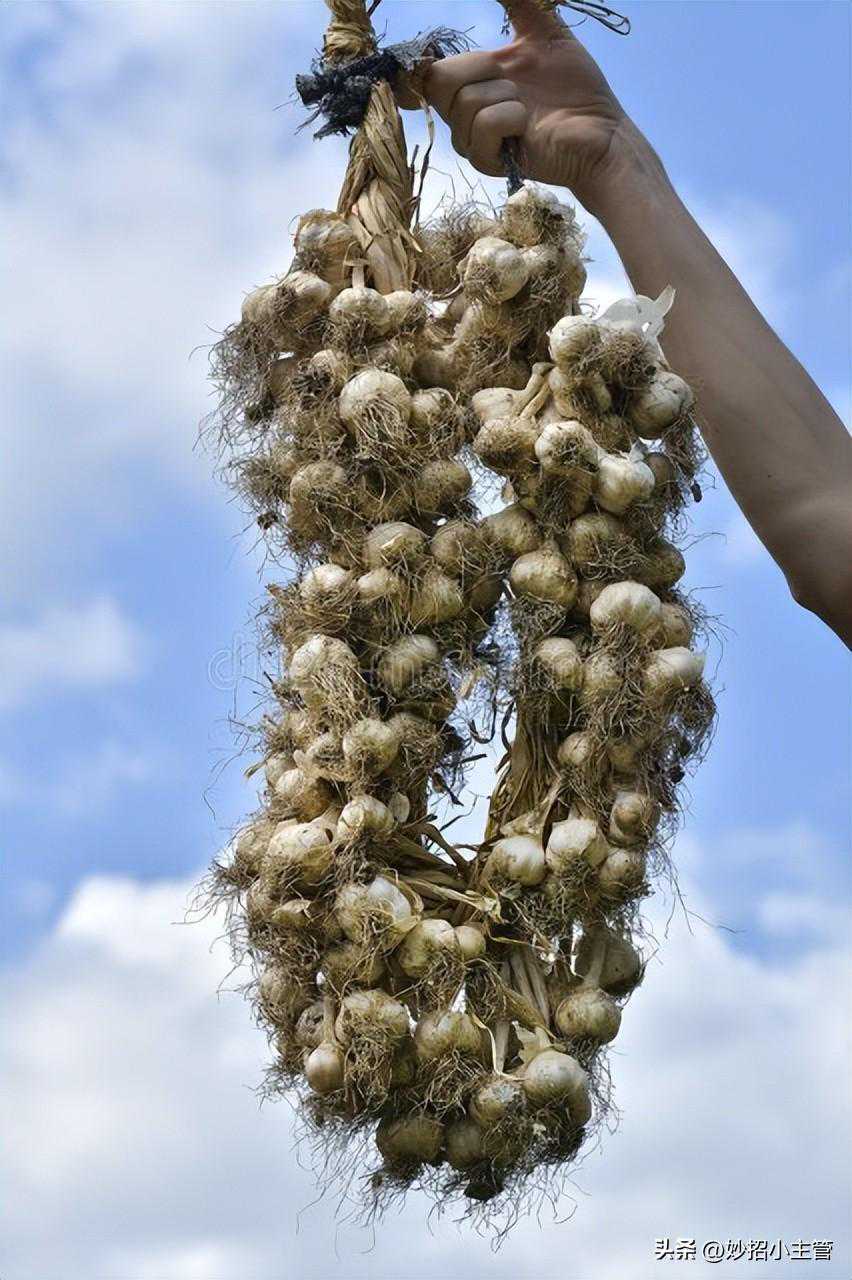 属于日次消耗品,大蒜也是我们乡下人最喜欢种的,一种就一块田,每次收成的时候总能收到几大箩筐,直接放或者放在地面上,大蒜都是特别容易发霉的,我们最常见的做法就是把大蒜编织好,一大串一大串地挂在房子最高那一层有遮荫的地方,通风阴凉又不潮湿。