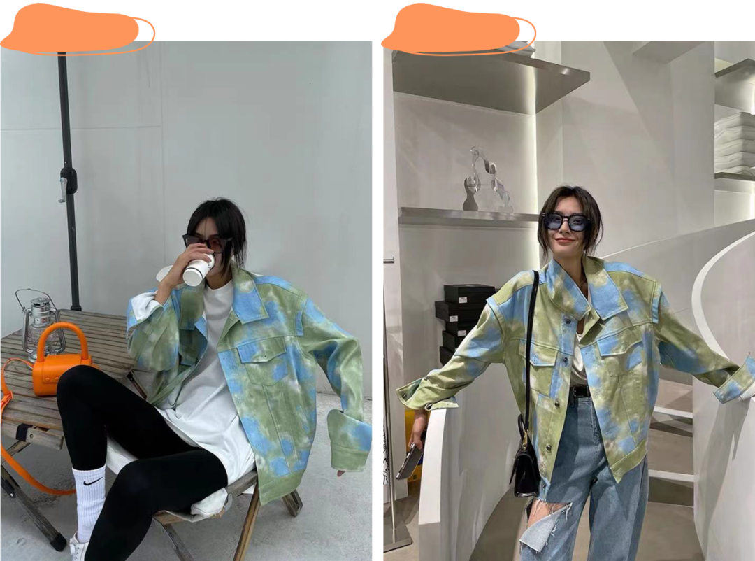 牛仔外套的风格可以百变多样,比如下面这种渐变的款式很特别,超级吸睛,水洗的雪花蓝牛仔外套穿上一秒变酷。