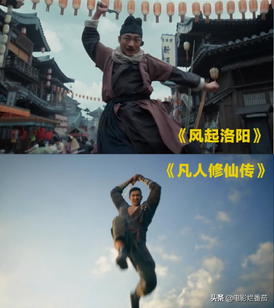 不过,原来同期播出的《雪中悍刀行》因为PPT动画般的打戏遭到恶评,《风起洛阳》的官博借机开始营销剧中精彩的打戏,结果有网友发现了剧中的打戏和动漫《凡人修仙传》如出一辙,就艾特了这部动画的武术指导,结果一对比,两剧的动作分镜一模一样。