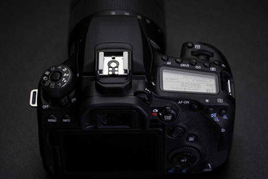 机顶按键布局,宽大的肩屏是高端单反的象征