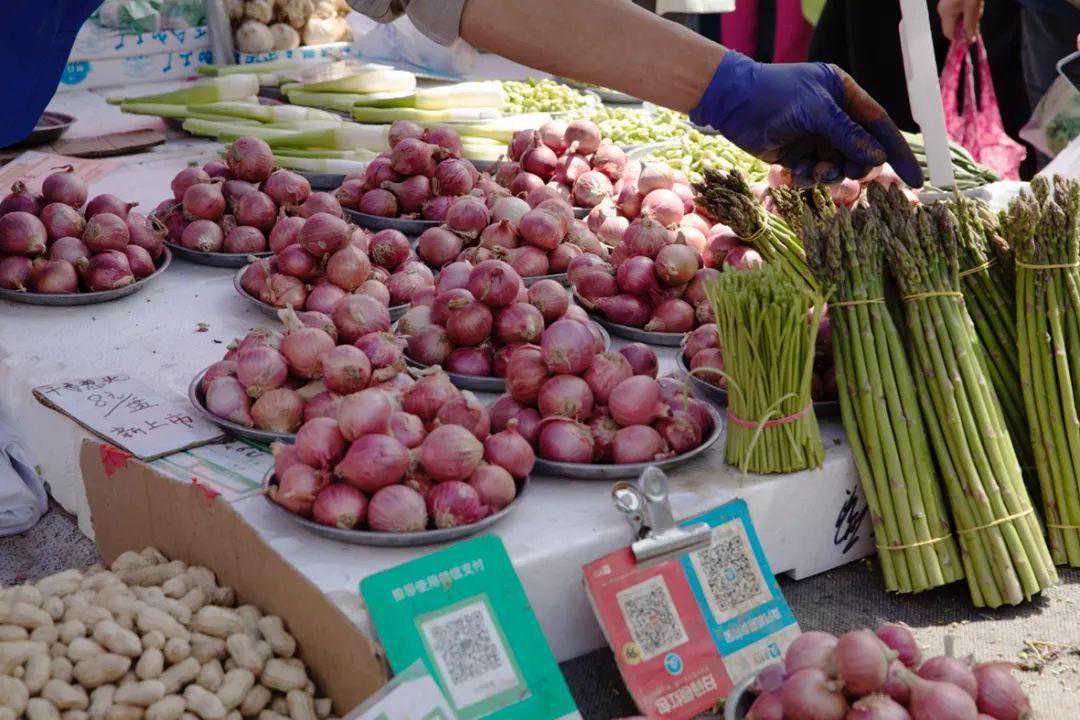 ▲琳琅满目的蔬果让人心动,相比之下,早市儿的肉摊和海鲜摊、调料摊等,则相比冷清了不少。
