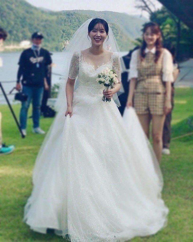 徐玄之前拍摄MBC电视剧《小偷家伙,小偷大人》中穿上美丽婚纱照,以蕾丝为主的婚纱设计显得浪漫又梦幻,落肩的款式也露出纤细的肩颈线条、增加一股性感氛围。