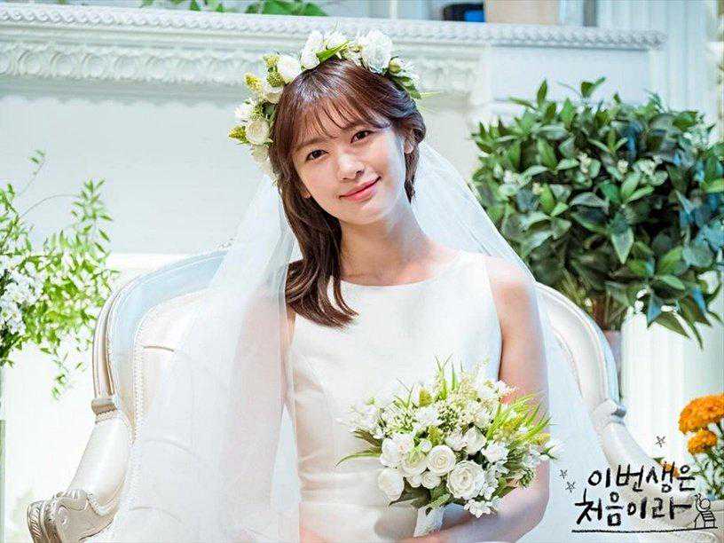 庭沼珉在韩剧《今生是第一次》中也有婚纱造型,相较之下庭沼珉这件婚纱走简单的经典款式,非常有气质!