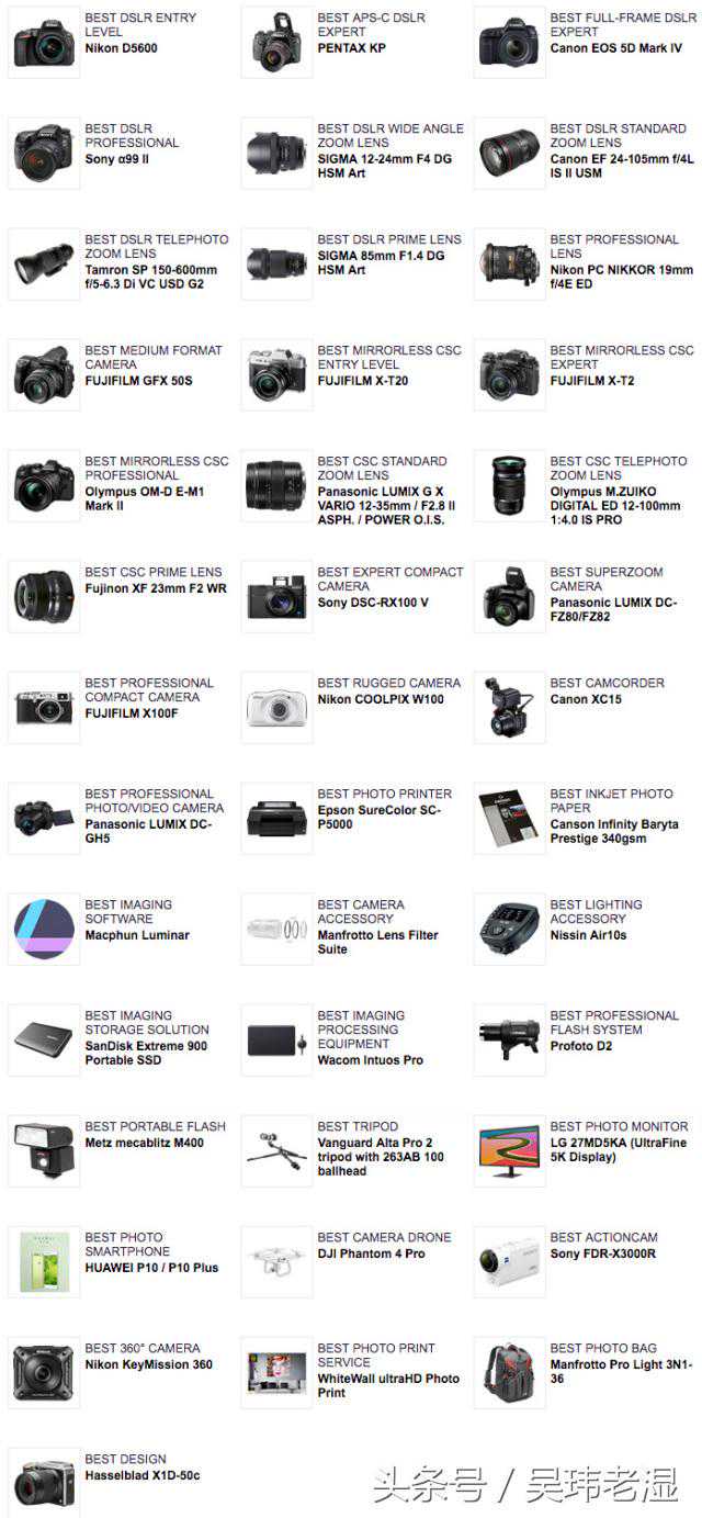近日,科技影像出版社协会在古巴首都哈瓦那公布了2017年TIPA数码影像产品大奖的获奖结果。最终,佳能EOS5DMarkIV相机获得最佳全幅单反相机奖、索尼的A99II相机获得最佳专业级单反相机奖,尼康PCNIKKOR19mmf/4EED拿下最佳专业镜头奖,不过富士却以5个获奖产品成为今年的最大赢家。