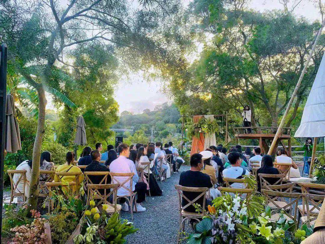 东坪山独有的山系诗意与自在,吸引了众多新人将东坪山屿岚SKYHIGH作为户外婚礼首选地。在浪漫随性的氛围中,用点点星光,照亮彼此的爱情长河。