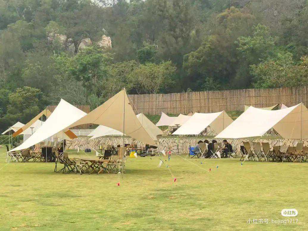 海风的气息荡漾在空气中,全开放的户外场地绿化率高达80%,目之所及尽是青翠,还能远眺五通灯塔。这里还会不定期举办露营生活节活动,和众多同好者一起等风来,追风去。