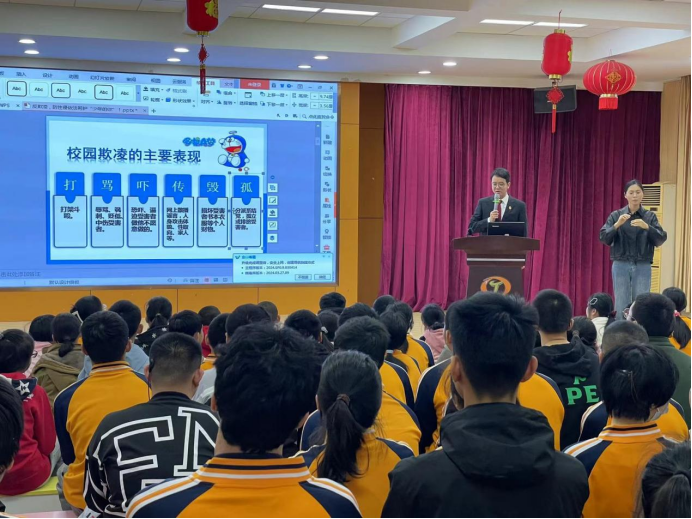 3月27日,泉州市特殊教育学校法治副校长、泉州中院干警黄德福前往该校,为全校师生讲授以校园欺凌为主题的法治课,就如何辨别、应对校园欺凌、什么是校园欺凌及其法律后果等,与全校师生进行深入浅出的交流,受到全校师生的广泛好评。