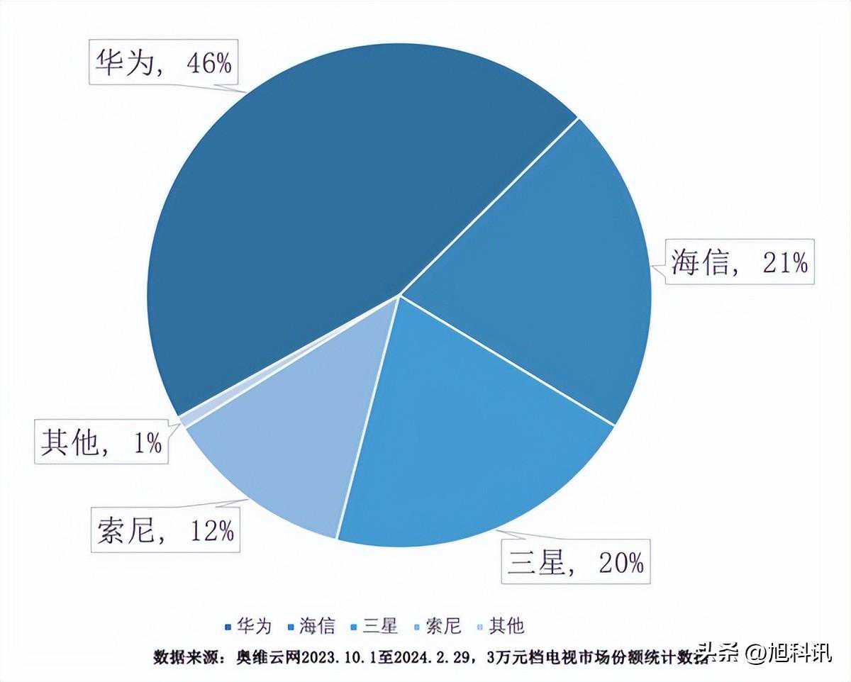 而在3万元档市场,华为的市场份额更是高达46%,随后分别是海信(21%)、三星(20%)和索尼(12%)。