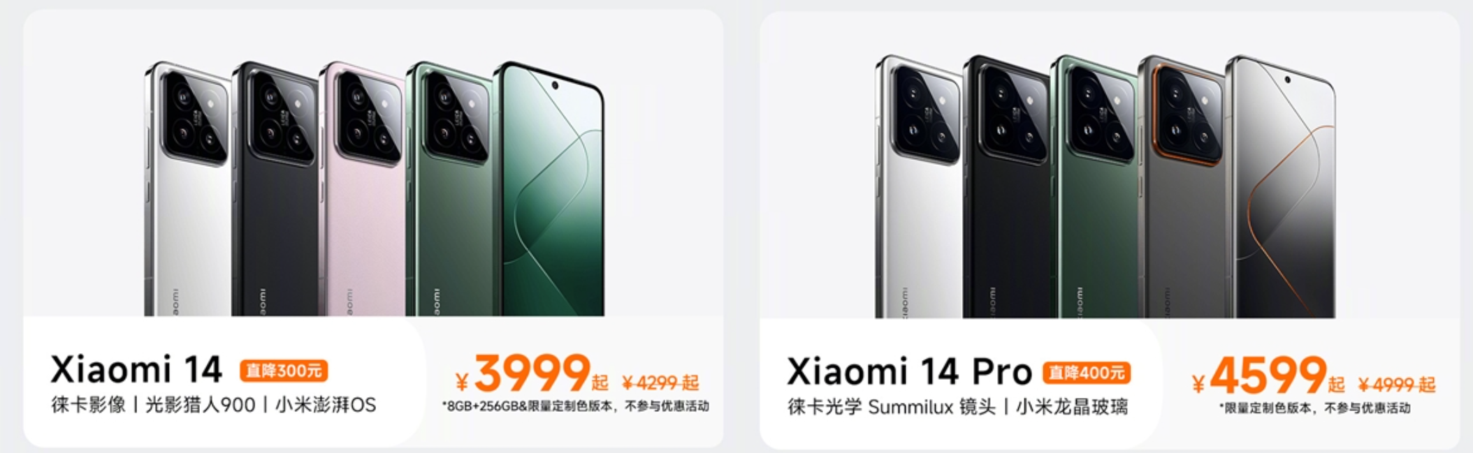 小米14优惠300元(不含定制色):12+256G-3999元,16+512G-4299元,16+1TB-4699元;