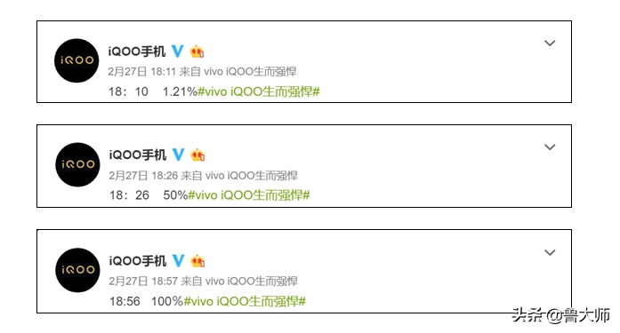 iQOO官微带来了新机充电测试,从1.21%到100%仅用了46分钟(18:10到18:56)。