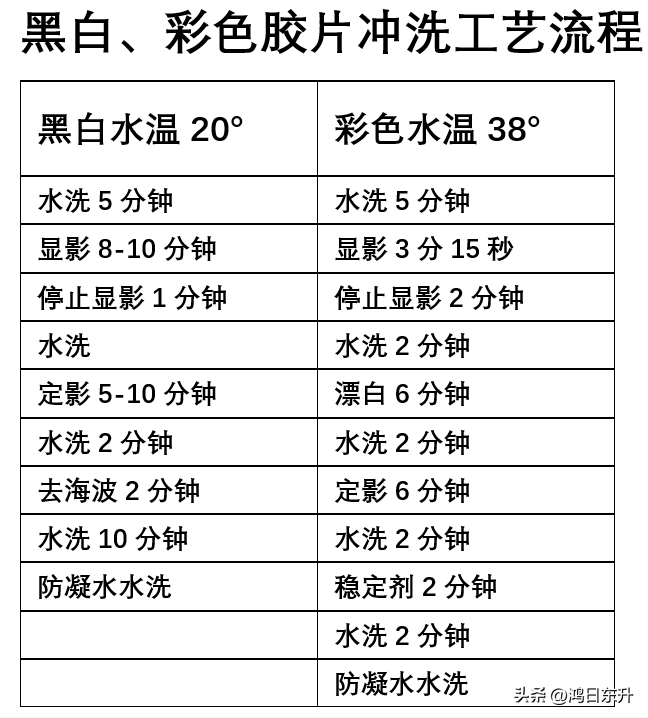 冲洗工艺和黑白胶片冲洗流程近似,黑白冲洗20度、彩色38度温度是最大差异,彩色胶片对恒温要求更高。