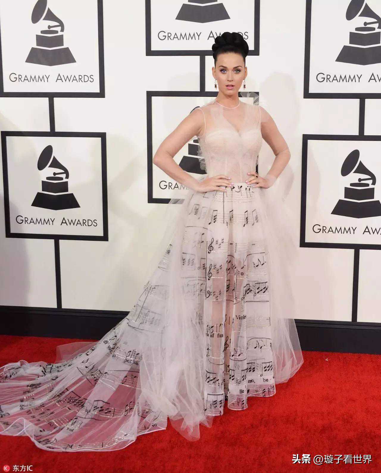 2014年,华伦天奴的音符裙,这条裙还被KatyPerry穿着参加了同年的格莱美红毯。