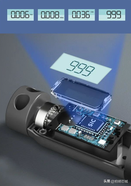 计数是智能跳绳的基础功能,通常是采用霍尔传感器检测跳绳转轴转动,运用了齿轮转动机械计数的原理,通过内置算法准确感知转轴360度圆周运动,实现精准计数,还可以感知用户跳绳卡顿绊绳等情况。跳绳模式、次数、时长、卡路里、电量等信息在LCD显示屏实时显示,当设备配对蓝牙成功时,所有的跳绳数据都将同步到APP中,从而实现个人的运动健康监测和管理。心率监测,姿态识别等功能则需搭载相应的传感器去感知。