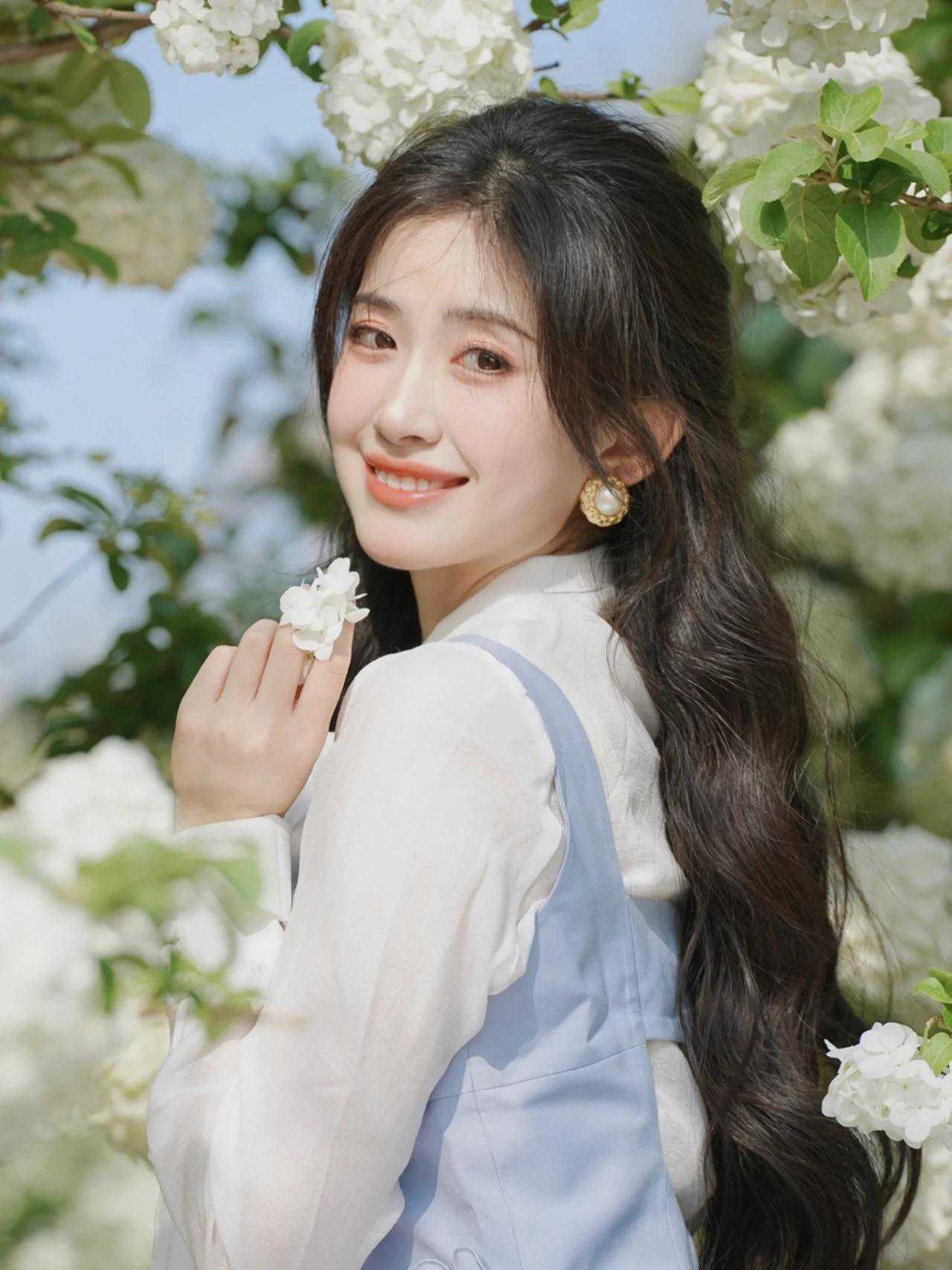 当然,阴天或多云天气也是拍摄绣球花人像的好时机,云层能起到柔光效果,减少强烈阴影,拍照更出片。