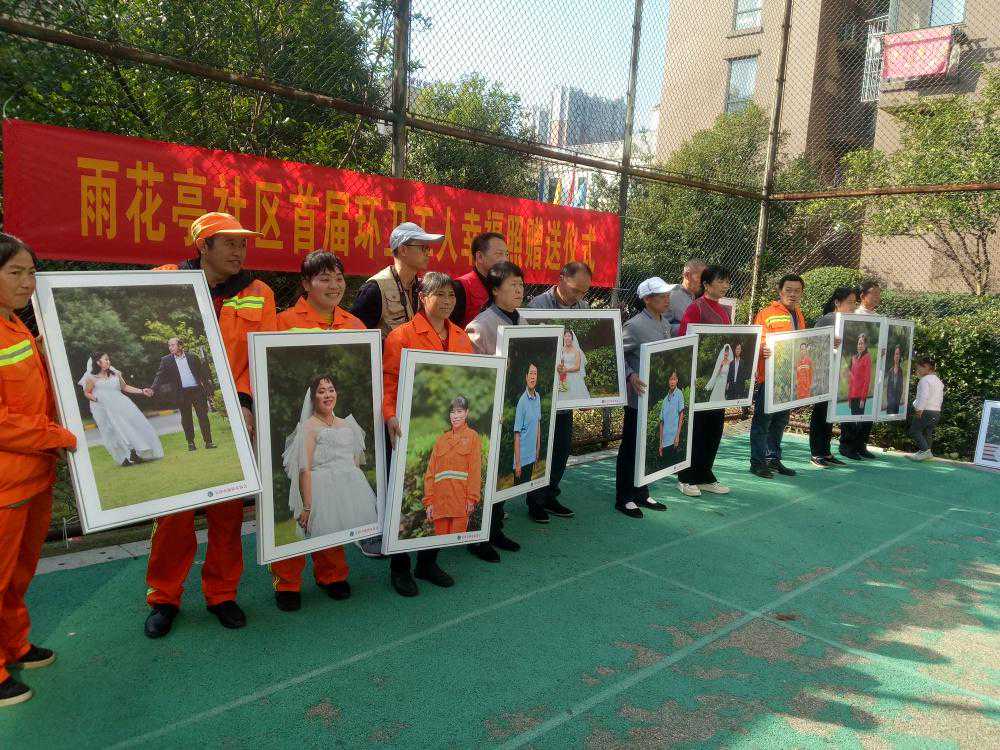 11月29日,长沙一社区举办首届环卫工幸福照颁发仪式,为10多名环卫工人、保洁员送上新拍的婚纱照、写真集、全家福等。这是社区响应环卫工人节,特意为他们举办的活动。