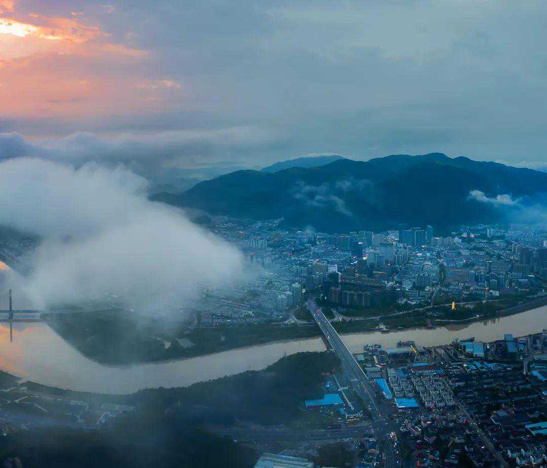 ▲雾涌临海城。摄影/沈海松