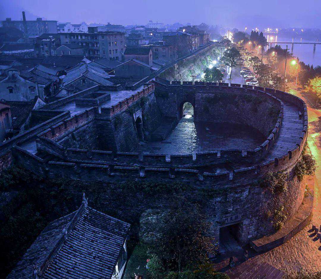 与北方长城相异的是,这段城墙紧挨着闹市,是在婉约江南的卖花声中,忽而崛起一道雄关,如苍龙蜿蜒匍匐于山水之间。东起揽胜门,西至靖越门,若从高空俯瞰,好似天人展臂一抱,左手握北固山,右手探入灵江,巍峨雄奇异常,登楼四望,满城风光尽收眼底。
