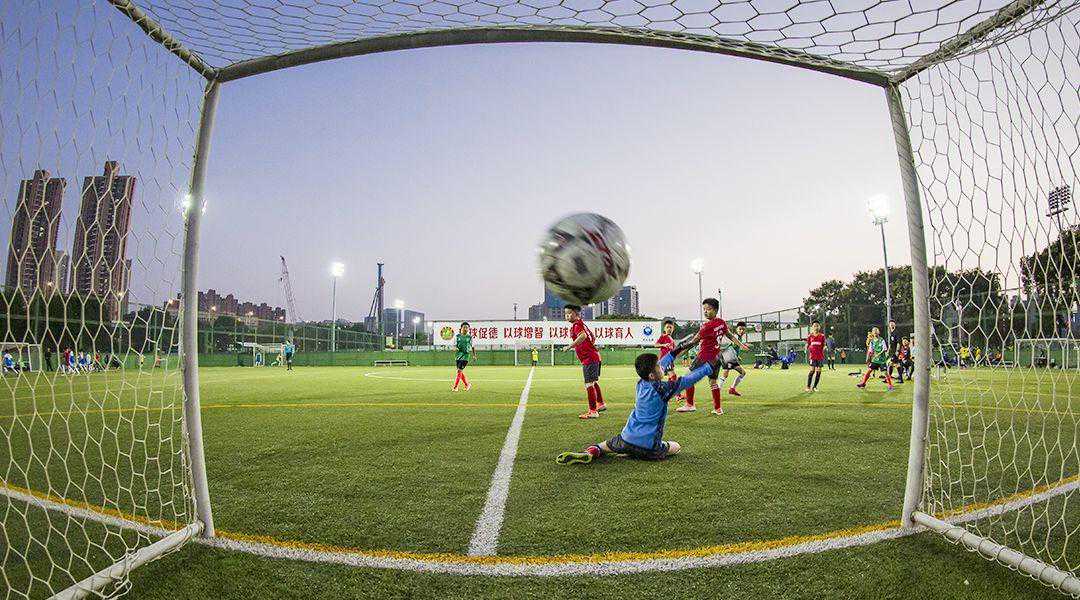 《射门》,武汉塔子湖全民健身体育中心,足球小将们拼搏的英姿。城市摄影队张斌摄