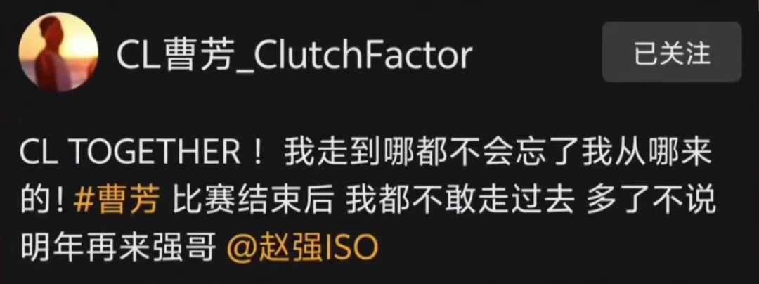 3月30日,杭州闪电虎鲸在黄文祺的带领下击败北京KP球队之后,代表KP出战的赵强哽咽着说道:「我感觉CL还在上面。」