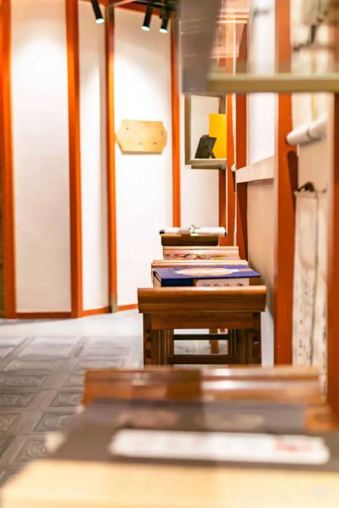 一走入馆中,古色古香的庭院便映入眼帘,只见青砖黛瓦、绿植环绕。走入廊中,还能看见灯笼高挂木门轻掩,给人感觉宁静而闲适,连脚步都不禁轻慢下来。