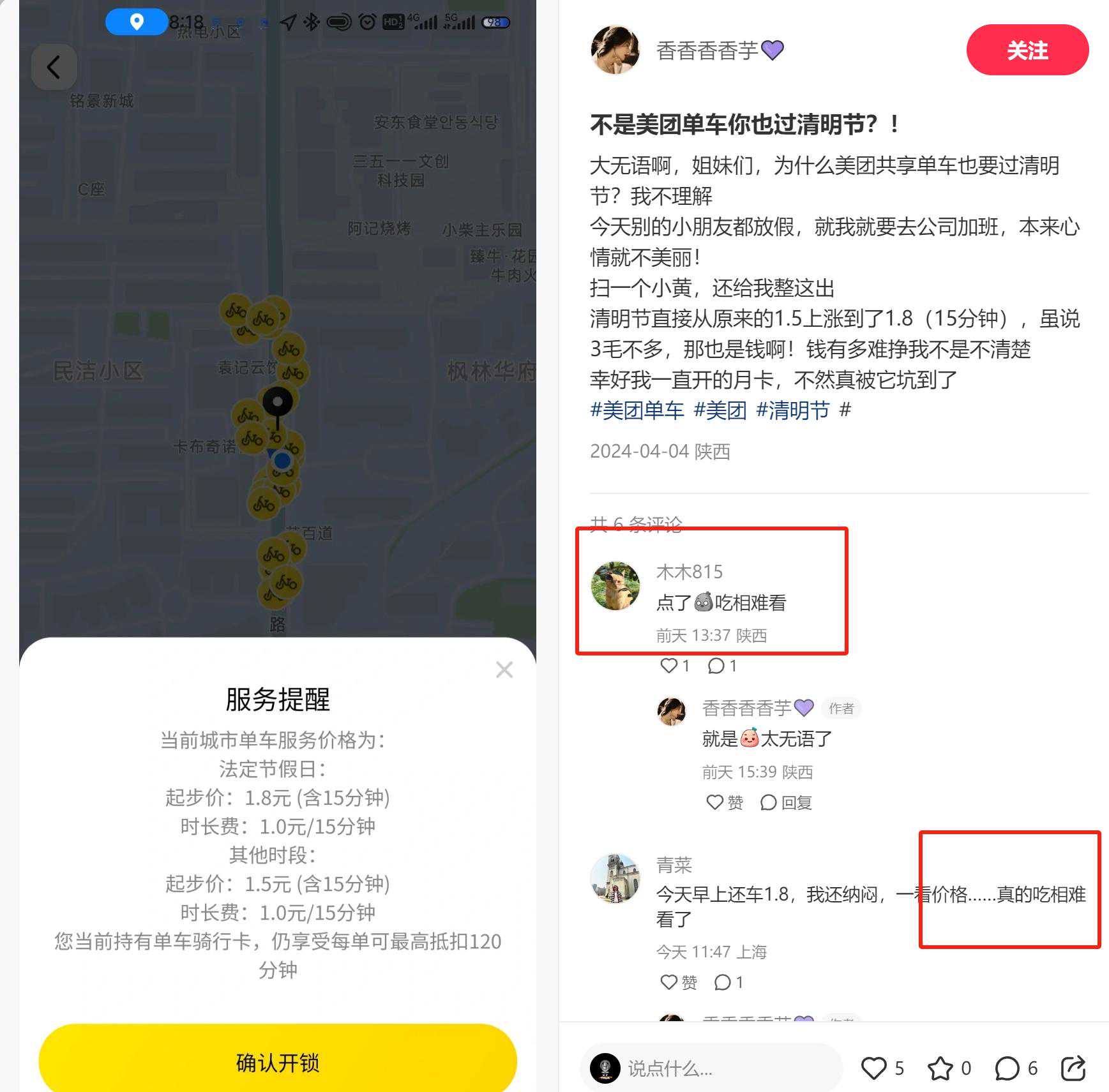 清明假期期间,美团的一个小变动受到了网友的吐槽,部分美团用户发现美团单车涨价了,涨幅超过20%,起步价由1.5元上涨了1.8元。