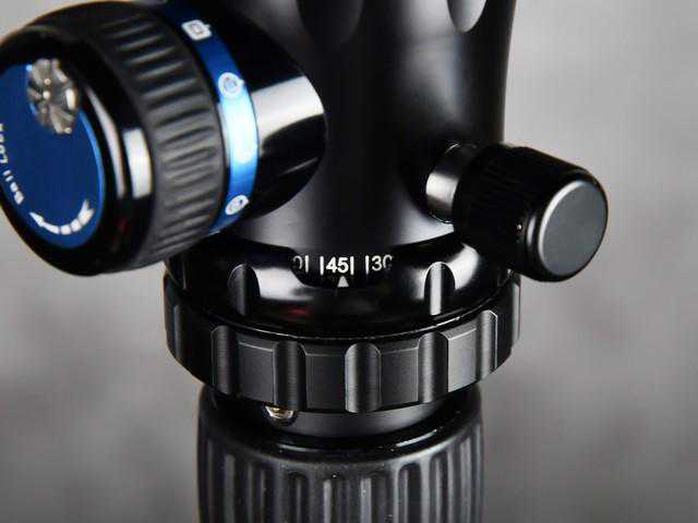 球台在快装板和云台上设置了三组水平仪,负责水平面校正、竖拍水平校正以及横拍单向水平校正。云台底座有360°水平刻度,为用户在风光摄影中拍摄全景接片提供角度参考。