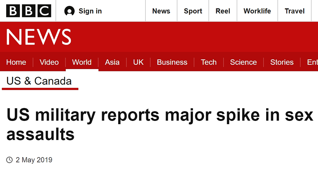 美国军方报告性侵犯事件激增