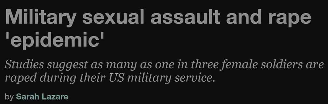 全国公共广播电台报道:“现役的女兵中有几乎三分之一被强奸,三分之二以上遭到性侵犯,这一问题十分普遍和系统。”