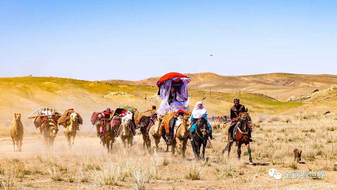 6月4日新疆,阿勒泰地区、福海县、沙尔布拉克牧民们身着当地特色民族服饰,赶着骆驼、马、牛、羊举行转场仪式,他们将沿着古老的“千里牧道”从春秋牧场行程近500公里转往夏季牧场。这是当地政府有组织地引导、保护牧民安全、无误、按时、有序、进行转场。经了解阿勒泰地区至今仍保留着目前在中国乃至世界最长和最完整的游牧迁徙路线。