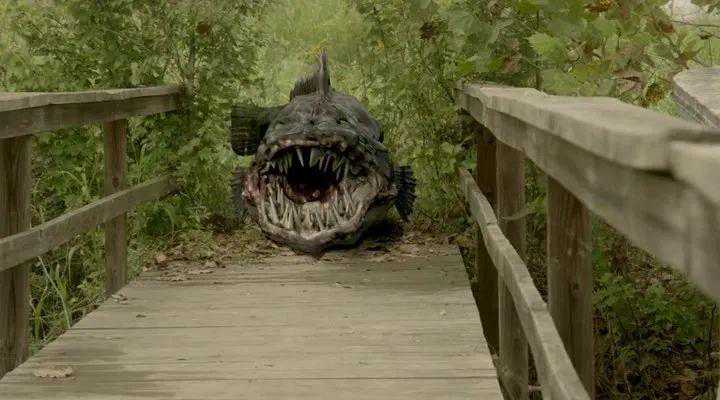 《恐怖蛇头鱼》沿袭了第一部的框架,不过并非基因改造鱼,而是乌鱼入侵美国之后,吃了人类的激素自发变异。