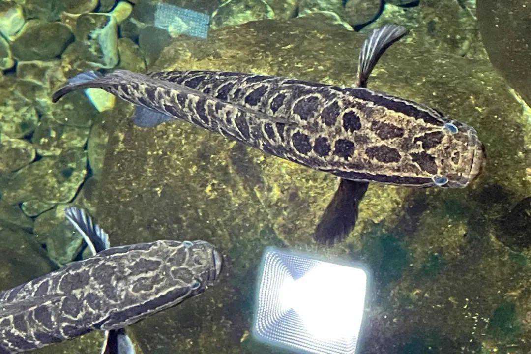 其实它看起来有点吓人,蟒蛇纹路,看上去没长鳞片。光溜溜的,不像草鱼花鲢这种普通鱼单纯。