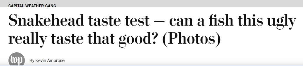 《华盛顿邮报》曾进行过这项美食测试,对当地乌鱼煎炸烘烤,各有各的美味,比罗非鱼好吃是人们对它最直观的评价。