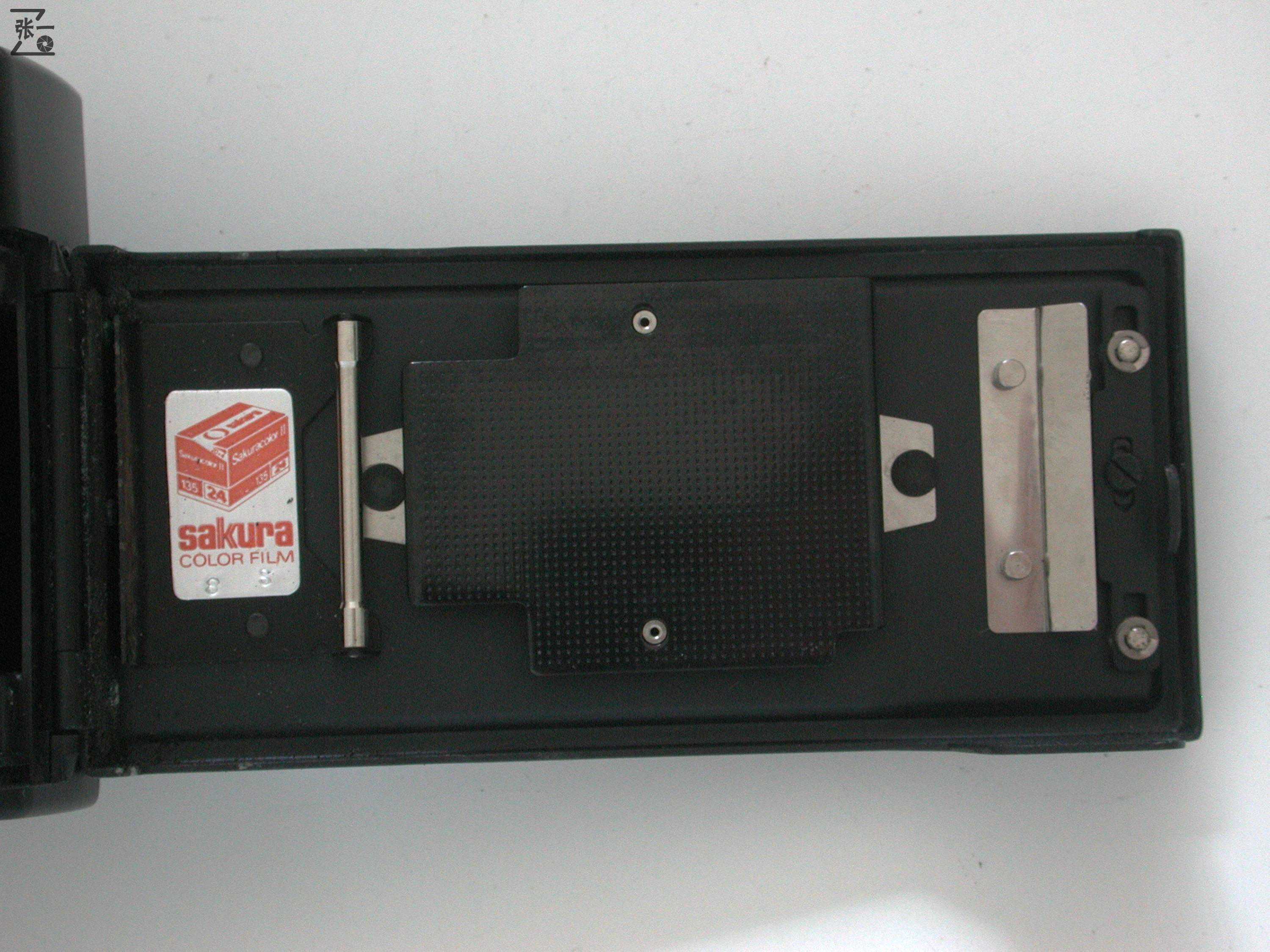 我手里这台编号为229898的KonicaC35AF的机背内侧面上,有个Sakura胶卷的贴纸,应该是为了给Sakura胶卷做推广之用。这一点,其实是很多国外既生产相机、又生产胶卷的厂家的做法,最常见的就是德国的Agfa和美国的Kodak。