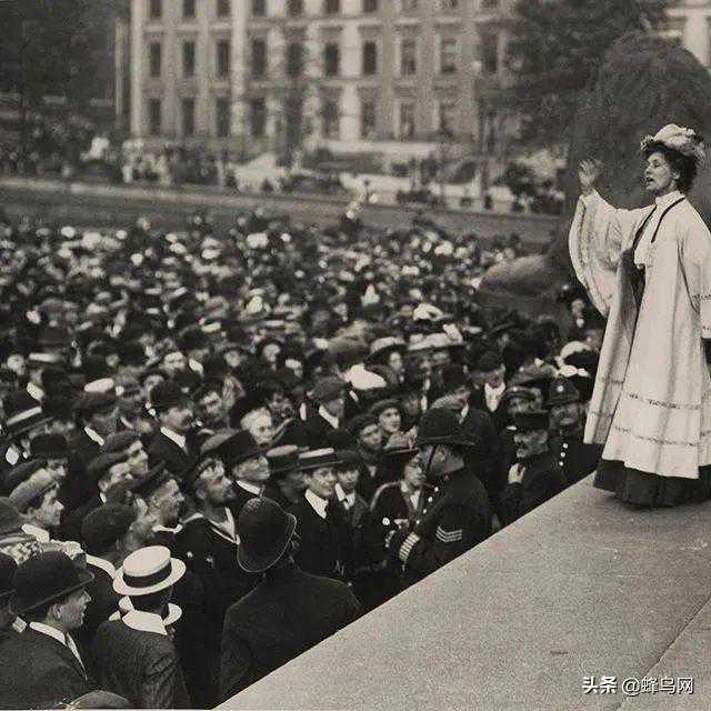 EmmelinePankhurst,她在1908年在特拉法加广场的一次集会上争取妇女的投票权