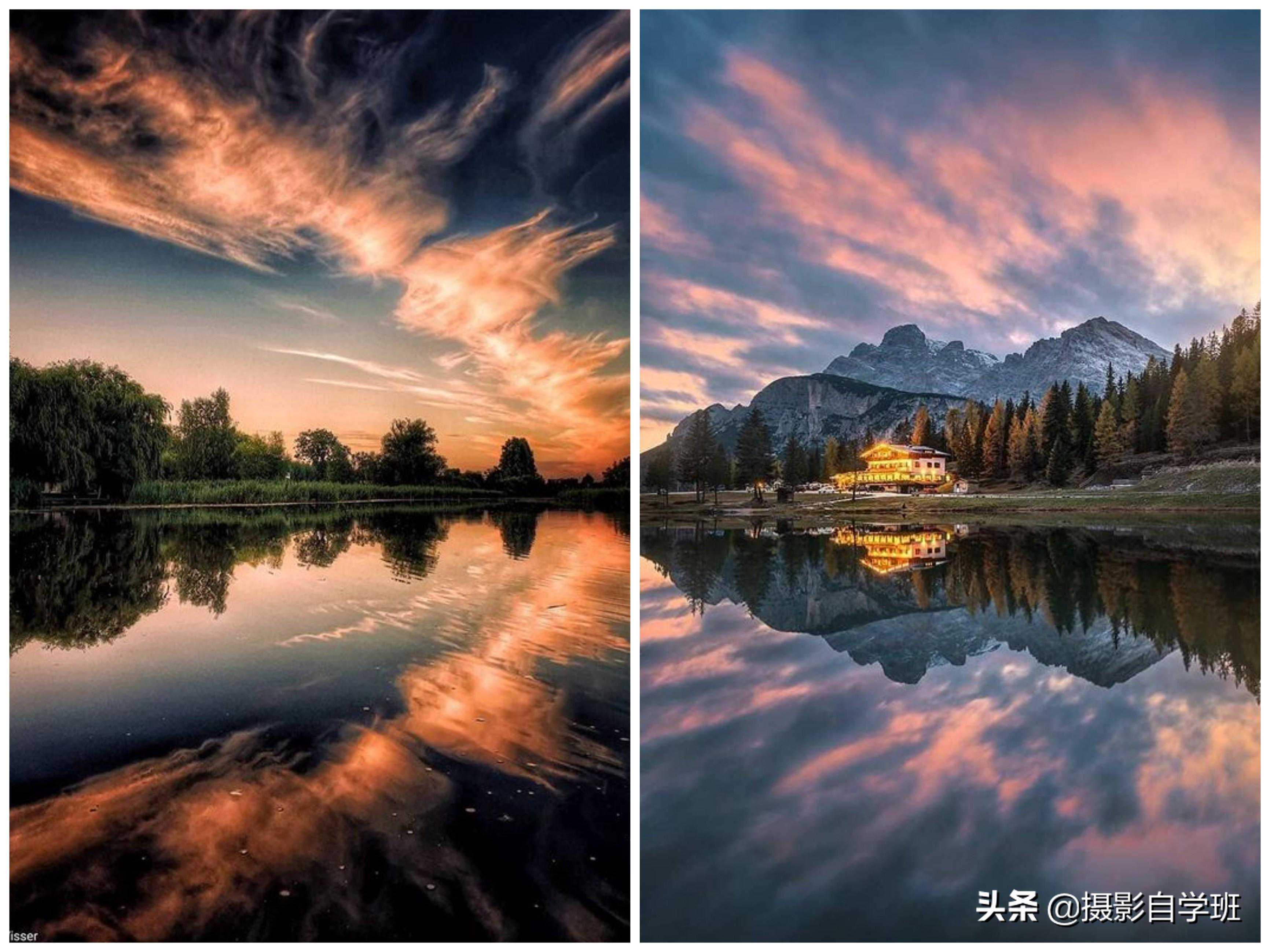 有些朋友照片很好看,有些照片就很一般,差在哪里呢?差在你照片的色彩,比如上面两张倒影的照片,就是在清晨和傍晚这个时间段拍摄的,此时阳光有色彩,这样风景就有色彩的倒影,也有色彩,倒影照片就会更好看了,你的照片即使是普通场景,有了色彩之后,也会看起来不一般。