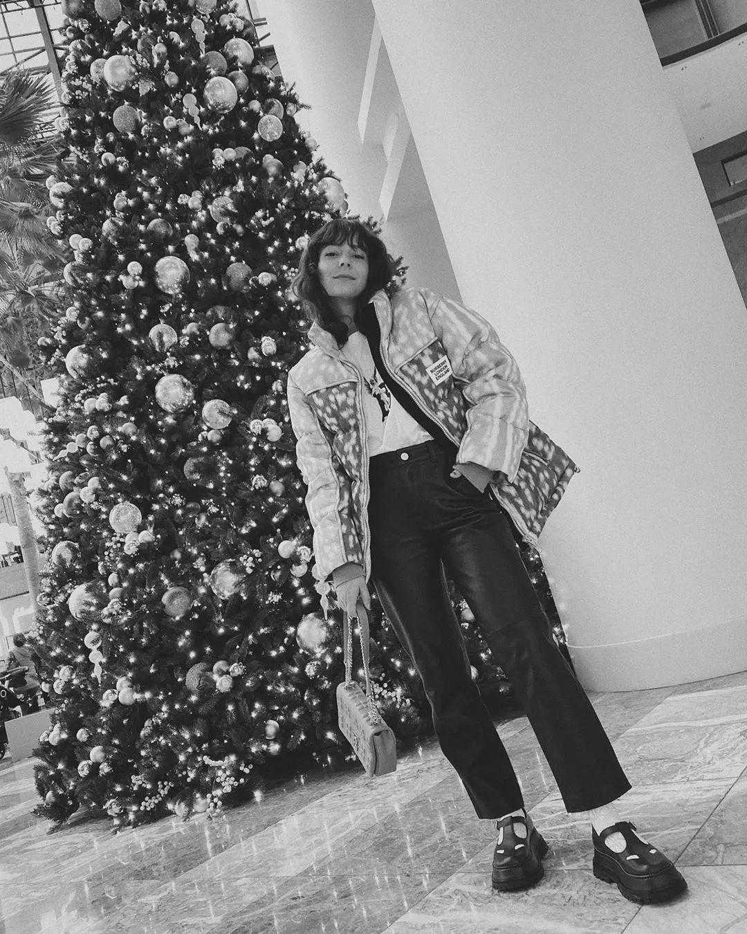 比如你可以只和圣诞树打卡合影,一来能突显气氛,二来也能让画面简约、突出主体。