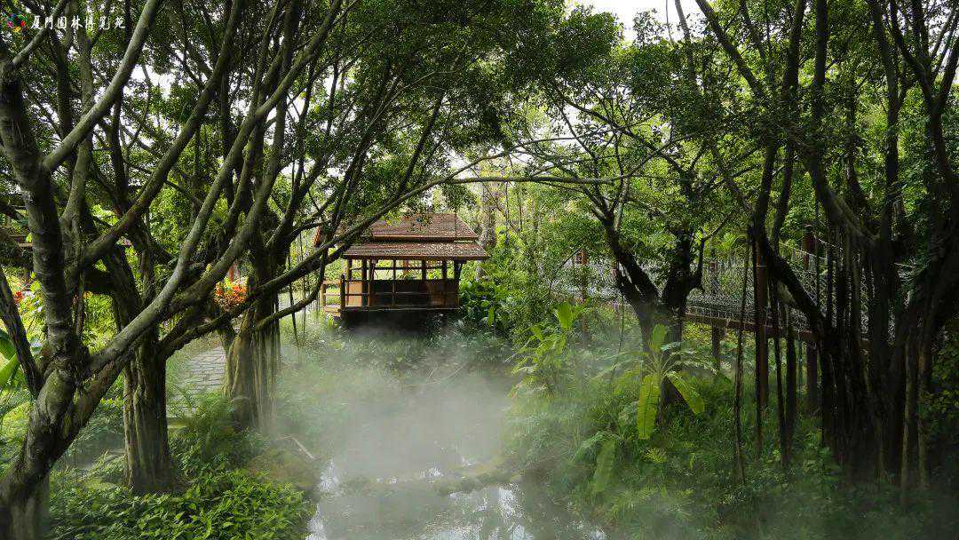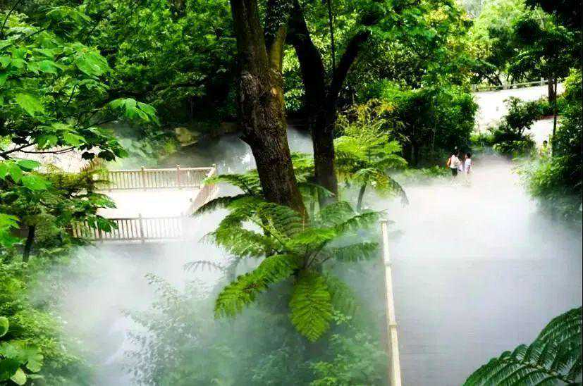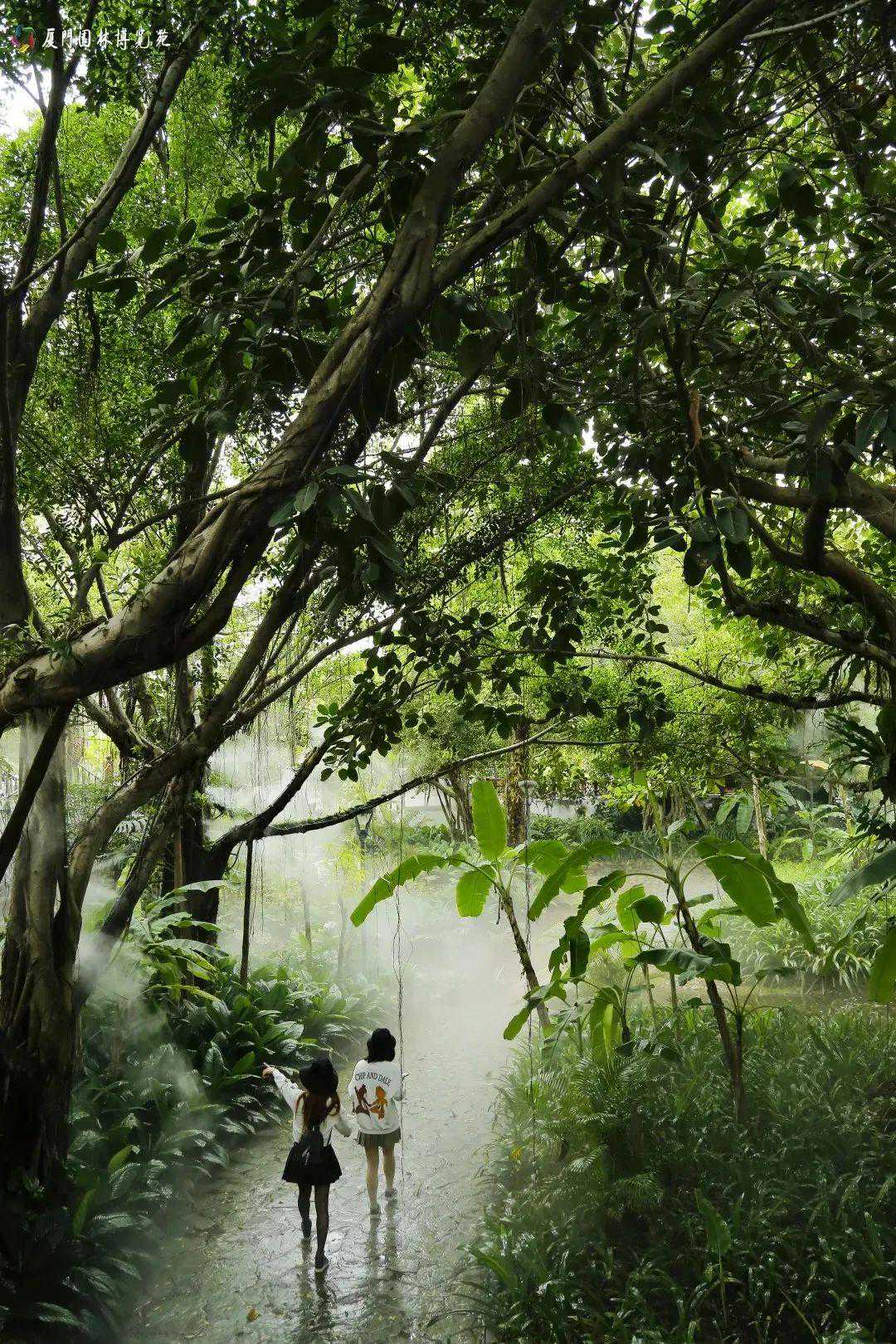 情人谷是来园博苑拍婚纱照的首选地,同植物园的雨林世界类似,这里古树浓绿、藤蔓缠绵。不经意间,白烟在藤蔓之间冉冉升起,宛若一座云雾交织的“迷雾森林”,让人有身处缥缈的仙境之感。