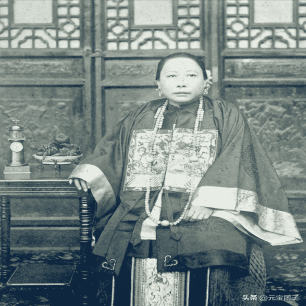 清朝朝廷大臣的太太,身着盛装,华丽的珠宝。举止娴静优雅