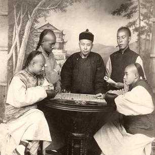 晚清一对正在下棋的父子下棋也不忘了抽口大烟