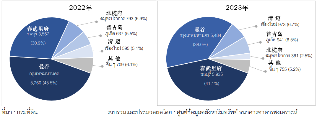 2022年之前,曼谷都是外国买家购买公寓最多的城市。2022年,在曼谷购买的公寓占比达到了45.5%。