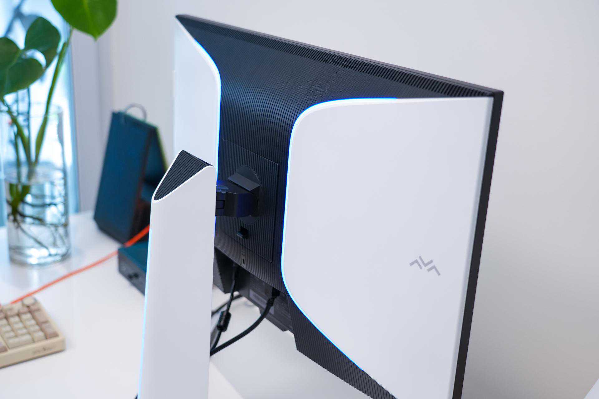 它的机身背面设计十分好看,还拥有“RGB+双翼造型”的灯光设计,该RGB是显示器自带的,预设有5种灯效,夜晚氛围感拉满。