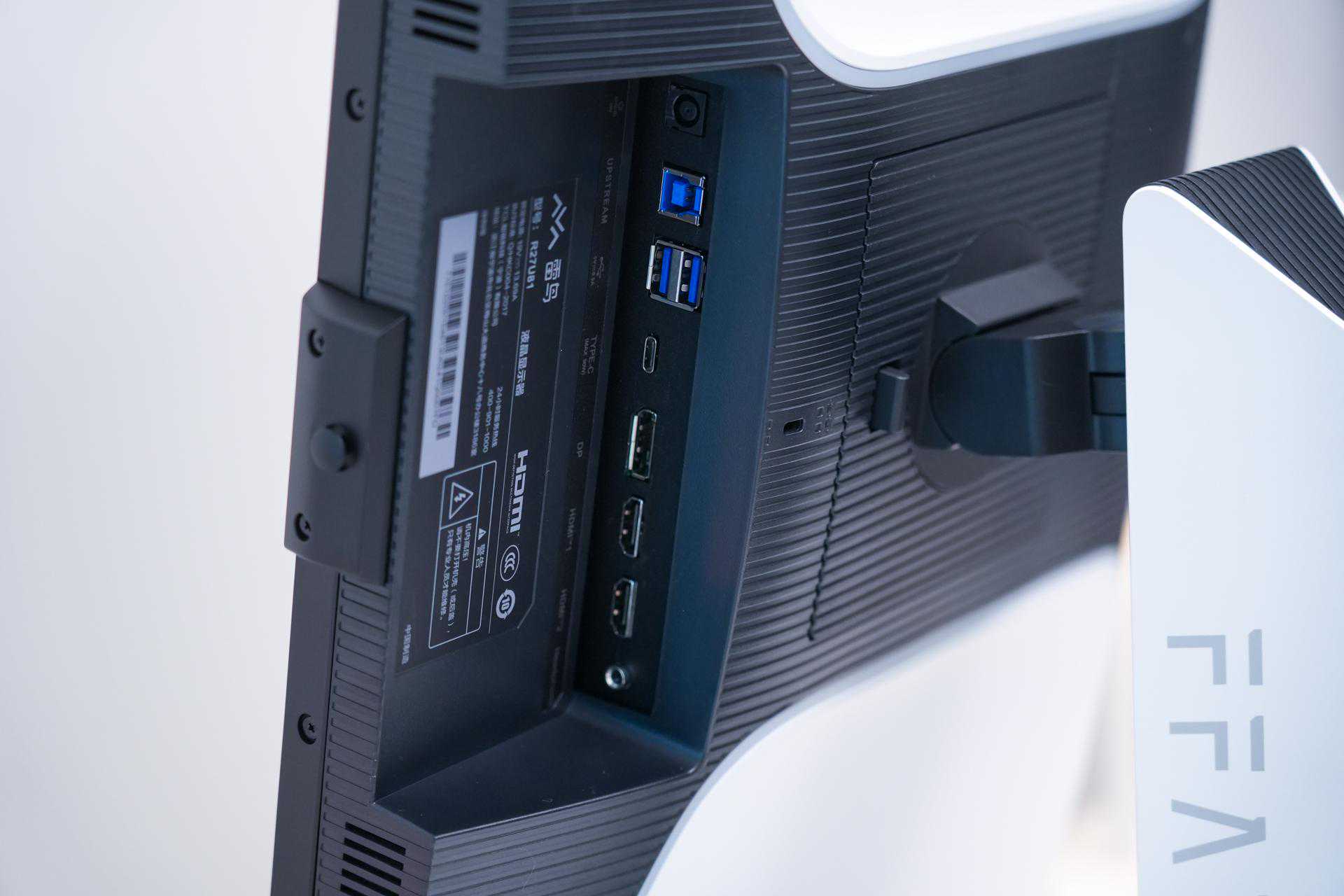 另外,显示器自带的接口非常丰富,包括有1个DP接口,2个HDMI接口,一个Type-C多功能接口(支持90W反向充电),一个音频接口,USB-HUB接口(实现2个接口的拓展),以及电源接口。