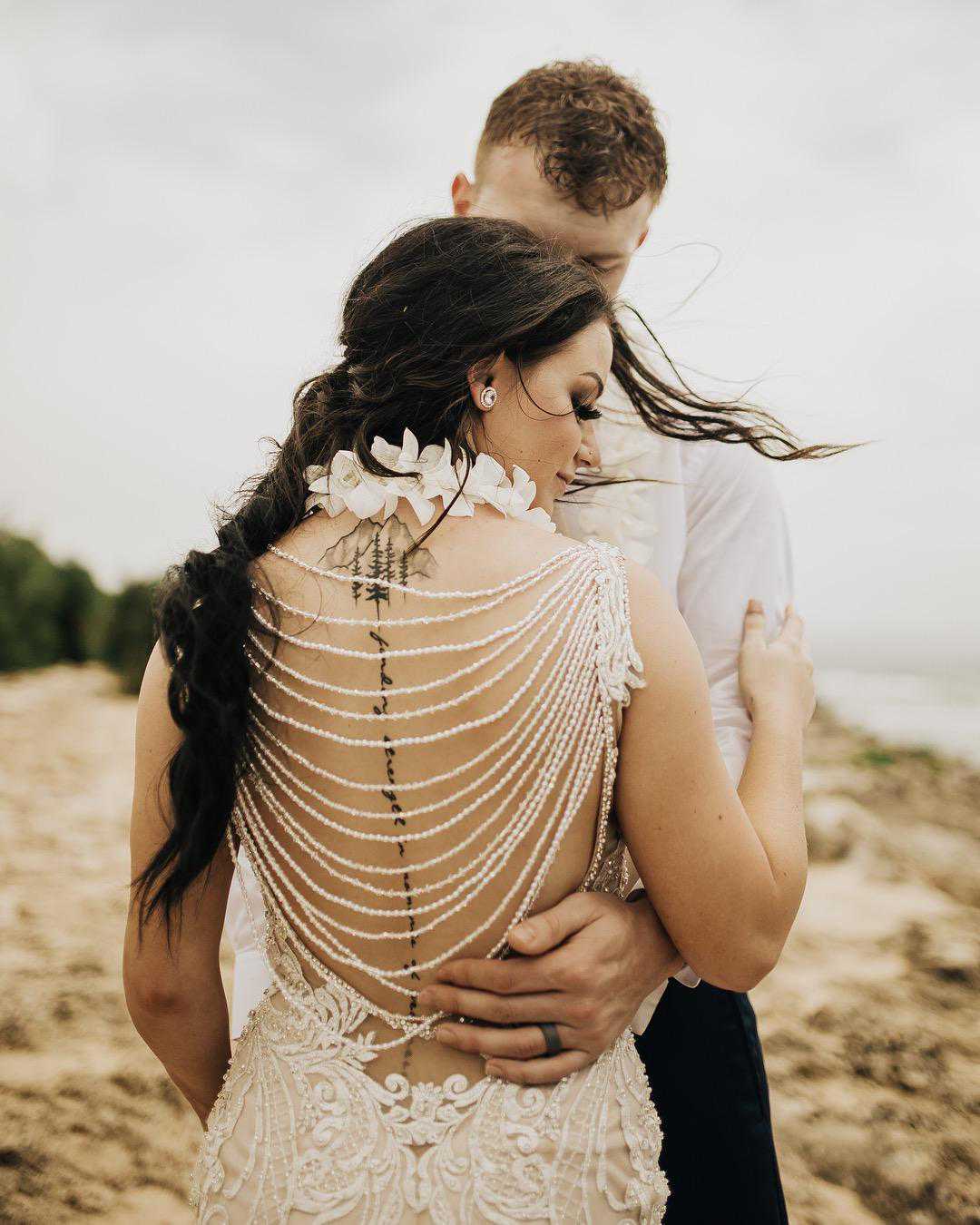 上面的这一套照片,就是在一片海滩上拍的。但是可能会跟国内的审美并不太一样。这是在一处沙滩高地上拍摄的婚纱照。新郎和新娘都穿上了花样繁复的礼服,仿佛就是穿越回了欧罗巴时代的样子。