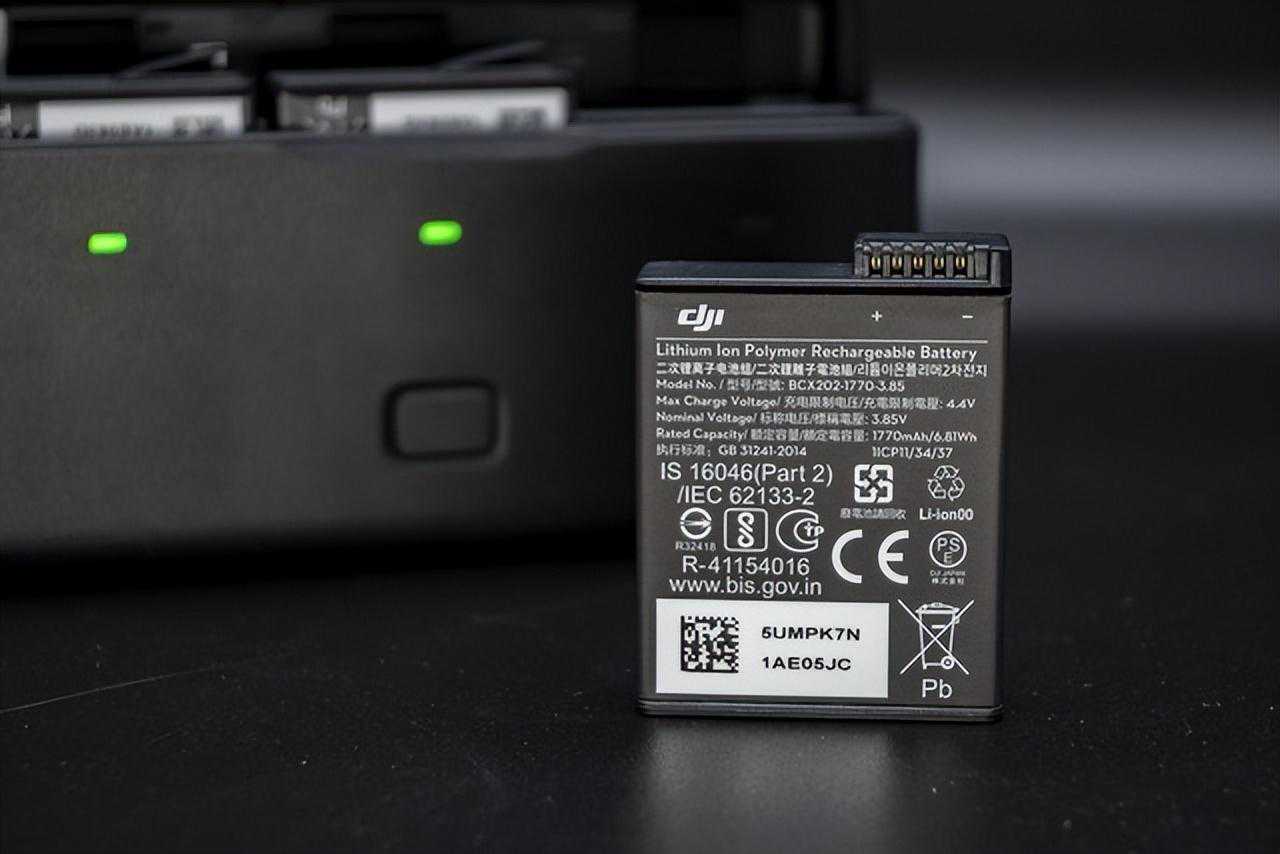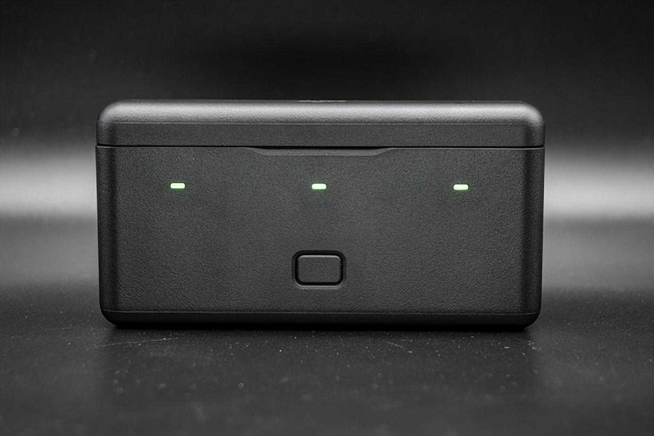 在全能套装中,附赠了一个多功能电池收纳盒,收纳盒可以放下三块DJIAction3的电池。三块电池充至80%需要56分钟,全部充满需要1小时59分钟。收纳盒本身还可以实现对外供电,也就是说可以当做应急的充电宝来使用,同时还可以收纳两张存储卡。