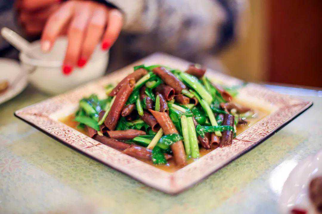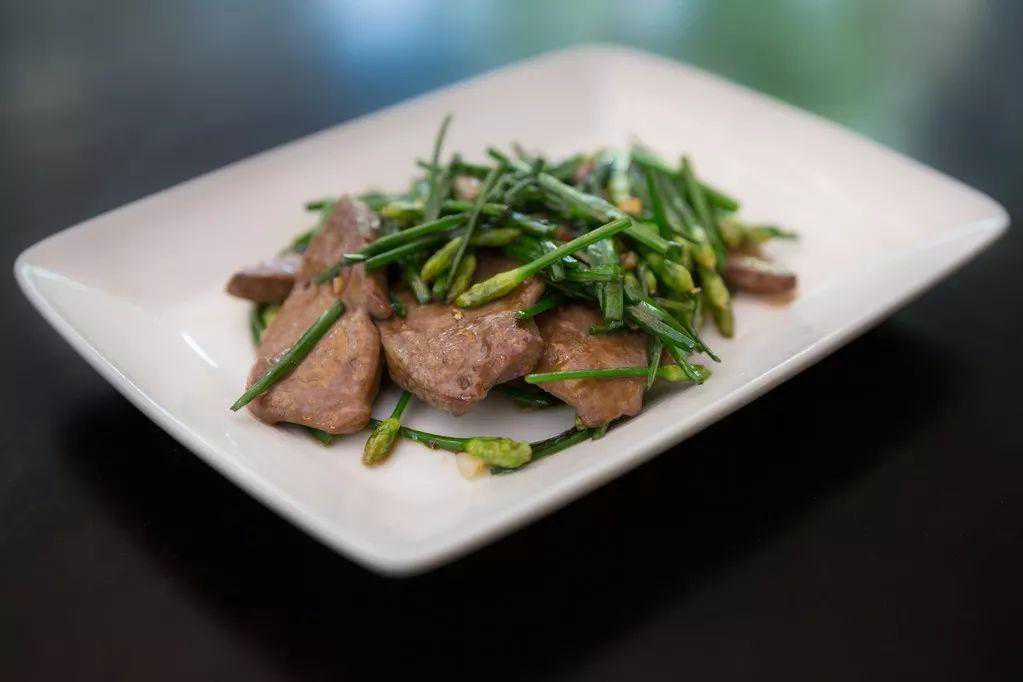 除了海肠、沙虫这种很多人眼中的“暗黑系食材”,蛤蜊、蛏子、小虾、海兔子、八爪鱼、马步鱼等等小海鲜都是用来与韭菜同炒的上佳选择。此时,韭菜来自大蒜素的特殊气味,起的是去腥提鲜的作用,更加惹人喜爱。同样的,内脏类的食材与韭菜也是绝配。广东人爱吃鹅,也偏爱韭菜鹅红。鹅血软嫩细致,滑溜溜的口感,若少了韭菜的点缀,便会黯然失色。