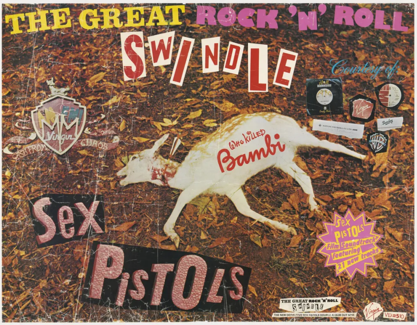 1975年,MalcolmMcLaren组建了SexPistols乐队,邀请JamieReid担任艺术总监。Ried为他们的第二张专辑《GodSavetheQueen》操刀的封面,对伊丽莎白二世女王(ElizabethII)的肖像进行了二次创作。当时正值伊丽莎白二世登基25周年,虽然歌曲与英国国歌同名,歌词却讽刺了君主制度。Ried运用拼贴手法,将不同的字体排列组合,遮挡住人物的面部,宛若“勒索信”,这样的设计也强化了歌曲的反叛意味。