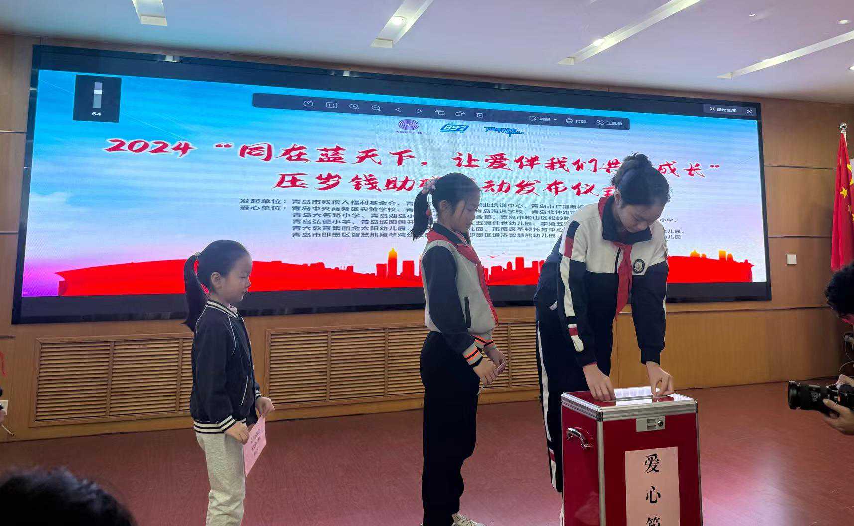 学校一直以来致力于爱心公益活动,旨在培养有爱心、有社会责任感的大名少年,在新学期第一天,学校参加由青岛市残疾人联合会、青岛市广播电视台联合岛城部分区中小学、幼儿园发起的2024“同在蓝天下,让爱伴我们共同成长”压岁钱助残系列公益活动。同学们纷纷响应,奉献爱心,在温暖的三月,小小追“锋”少年身体力行践行爱奉献、益他人的爱心公益精神。