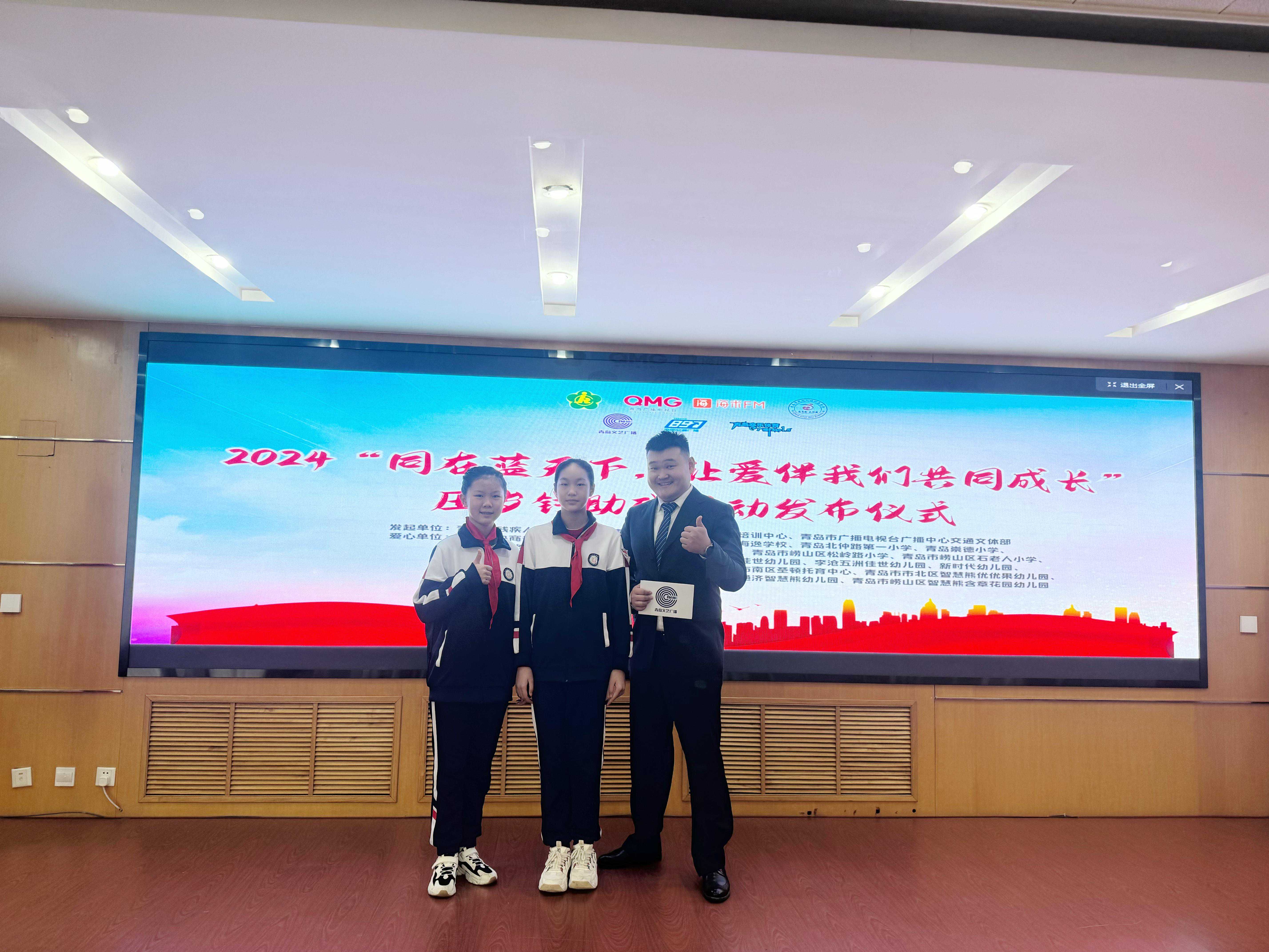 在3月5日学雷锋纪念日,学校学生代表将全校爱心名单转交给了青岛市残疾人福利基金会,并代表全校师生向岛城的少年儿童发起公益倡议。