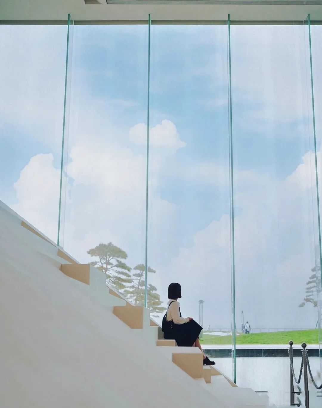 在青岛后海,藏着一栋如美术馆般的建筑,门口的海岸线人少又静谧,配上油画般的草坪,有种“绿野仙踪”的即视感,很适合拍ins风照片。