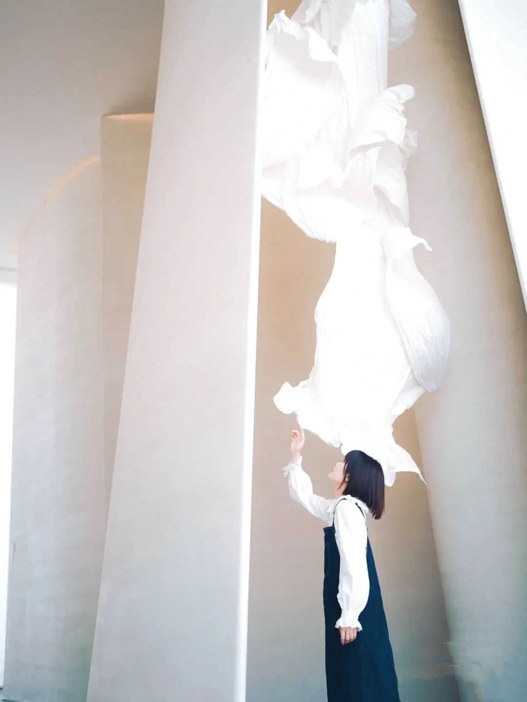 二楼大面积的纯白原木色调,拼接成片的落地玻璃,采光通透自由,楼梯盘旋而上,通过各种艺术装置隔断出的隐秘空间,打造出了别致的审美趣味。